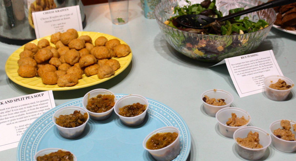 One of the highlights of the evening is the Renaissance period food. Tasting new and unfamiliar recipes can be quite the adventure! Guests may sign up to bring a certain food item through Sign Up Genius, or another tool. Recipes can be found online or in cookbooks like this.