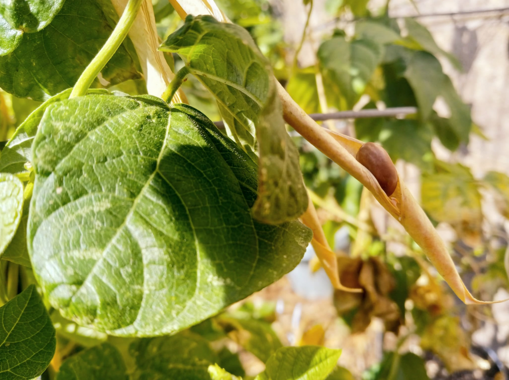 Take the bean plant, for instance. A few pods, now withered on the vine, had twisted (in such a fascinating way!) and were pushing the dried beans out of the pods where they would land softly onto the rich brown soil below. Given the right circumstances, these dried bean seeds will grow into bounteous, life-giving vines. Life begetting life, the way nature intended.